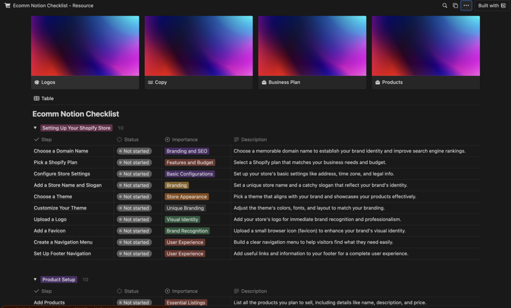 Ready to launch your e-commerce business on Shopify? Our expert-curated checklist is perfect for beginners and startups who want to create a standout online store. With 75 actionable steps, this template guides you from setup to launch, covering all the essentials like branding, SEO, and customer experience.